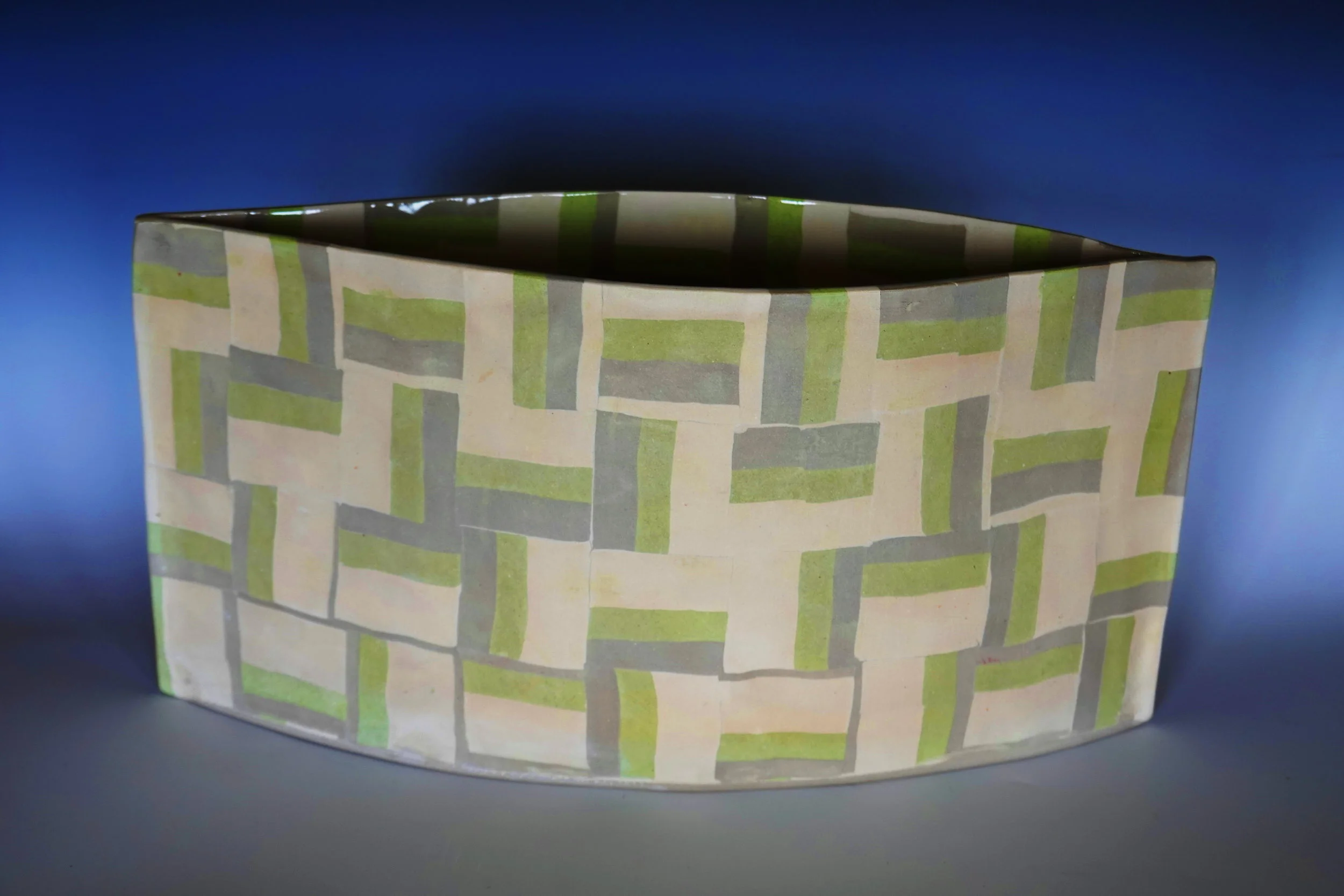Usually I'm in my studio working. Please cruise through the site and take a look at the different pieces...I mainly work with porcelain or stoneware. I love color, so lots of the pieces are made with colored clay.